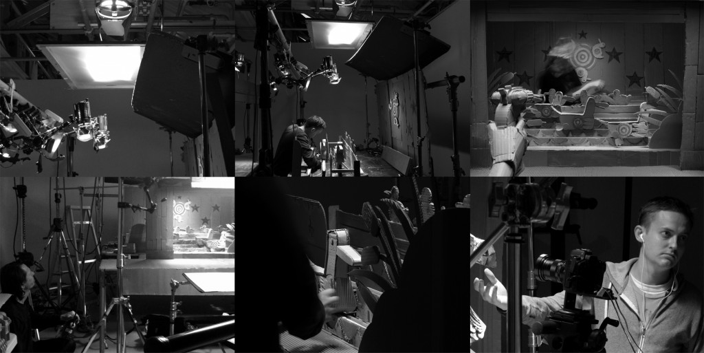 Here are some photos from my recent shoot at Clapham Road Studios. My latest work Duck Shoot is a 30 second stop-motion piece made entirely out of recycled cardboard. After a lot of hard graft from a team of amazingly talented individuals, I am nearing completion on the project and will be releasing it very soon.